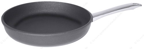 • aus handgegossenem Aluminium-Granit- Kokillenguss, Antihaftbeschichtung aus Titan-Aluminiumoxyd-Plasma, backofenfest bis +250°C, plangedrehter Boden, mit schwerem Stiel aus Edelstahl 18/10, nicht induktionsgeeignet, hochwertiges Qualitätsprodukt
