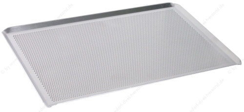 • aus 2 mm starkem Aluminiumblech, ungebeizt, aus einem Stück gezogen, Ränder 45° mit geschlossenen Ecken, 3 mm Perforierung, ideal für den Einsatz von Backmatten, nicht spülmaschinengeeignet