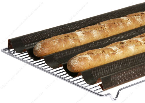 • aus Silikon, -40°C bis +280°C, zum Aufbacken von tiefgefrorenen Brötchen- oder Baguetteteigen z.B. für Frühstücksbuffets