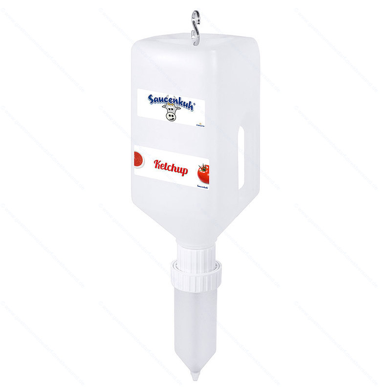 • auch bekannt als "Euterspender", mit Aufhängeöse und -haken, bestehend aus "Melkspender" aus Silikon und Nachfüllbehälter aus Polypropylen, zur hygienisch einwandfreien Portionierung von Senf, Ketchup, Mayonnaise oder Dressing durch leichten Fingerdruck
