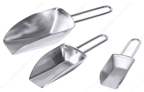 • aus Edelstahl 18/10, hochglänzend, mit Drahtgriff, ideal für Gewürzdosen oder als Eisschaufel