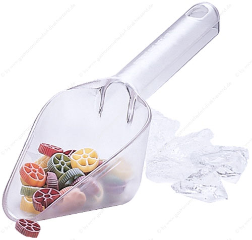 • aus glasklarem Polycarbonat, ideal als Eisschaufel und zum Abfüllen in schmale Behältnisse zu verwenden