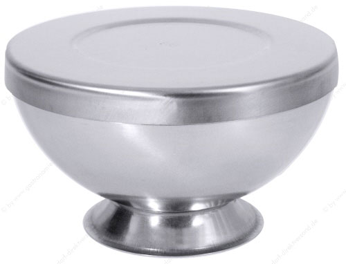 • aus Edelstahl 18/10, hochglänzend, zweiteilig, mit Fuß und Deckel, schwere Qualität