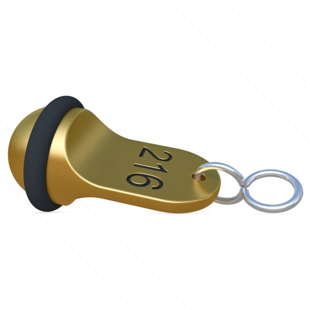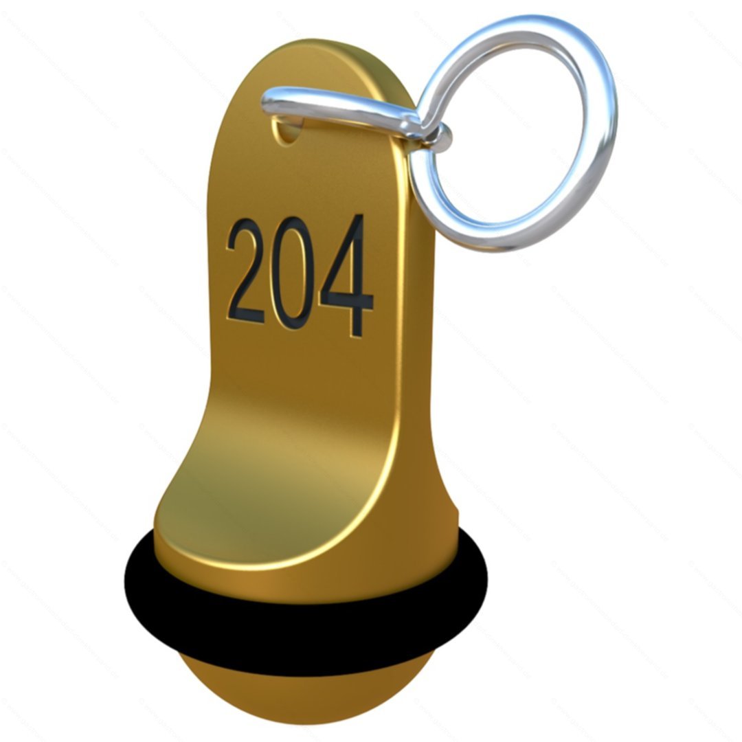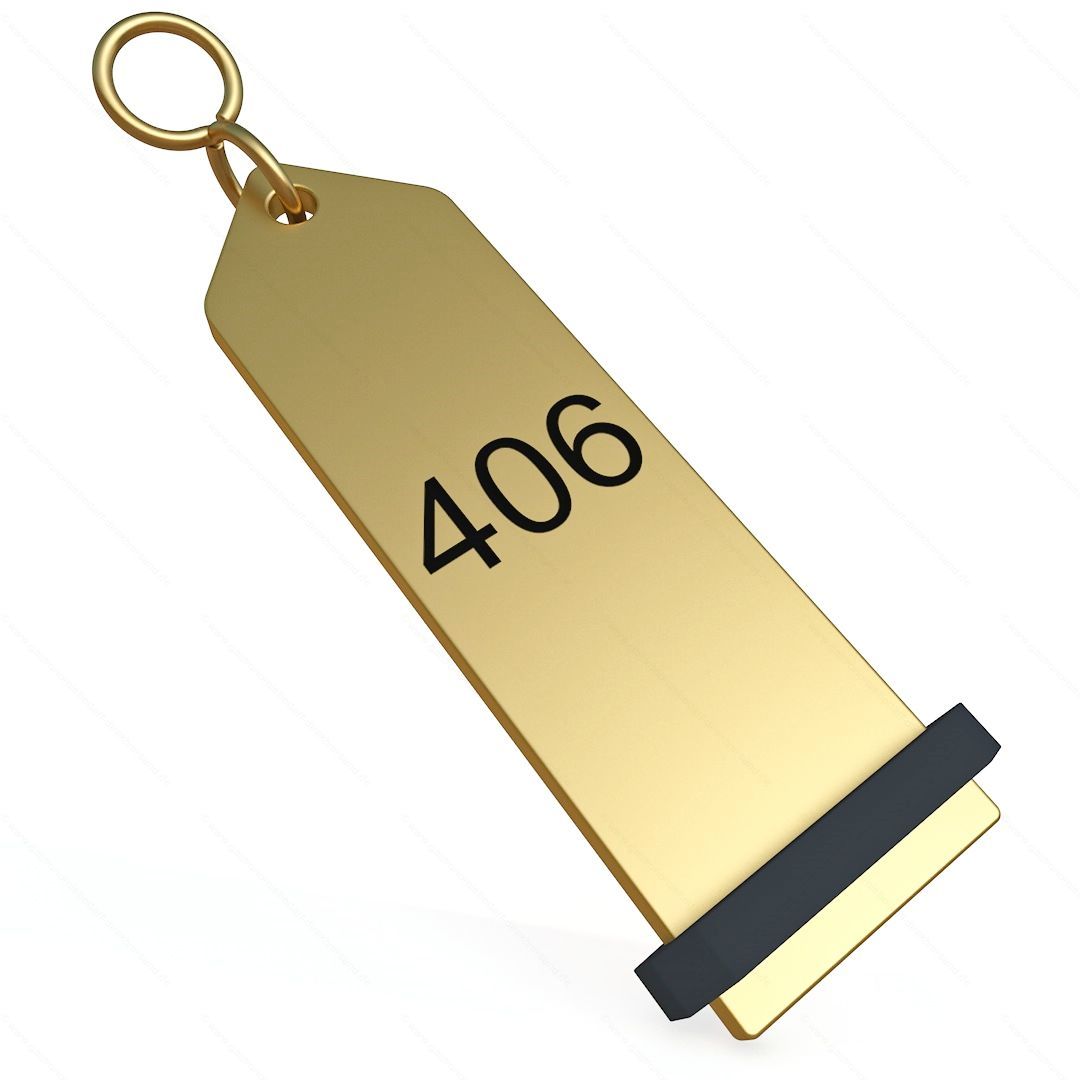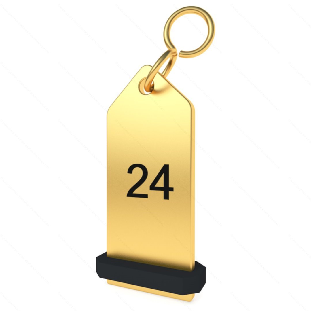 • aus goldfarbenen eloxiertem Leichtmetall, mit schwarz ausgelegter Gravur, mit S-Haken und Schonring, alle Nummern bis maximal drei Ziffern verfügbar, Lieferung einseitig graviert (auf Anfrage auch silberfarben, beidseitig beschriftet und mit Hotelnamen lieferbar)