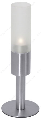 • für Teelichte, hoher Fuß aus Edelstahl, matt poliert, das satinierte Glas ist leicht abnehmbar und durch eine Feder gesichert