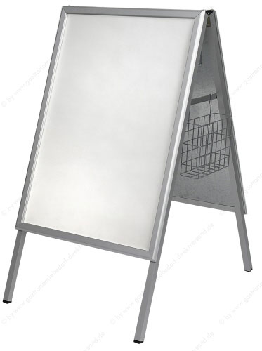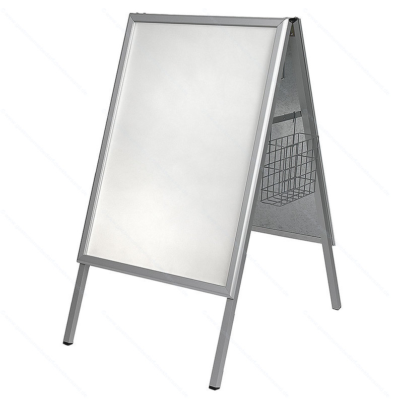 • in DIN-Plakatformaten, wetterfestes 32 mm eloxiertes Aluminiumprofil, mit beidseitigem Klapprahmen, verzinkter Stahlrückwand, Antireflex-Schutzscheibe und Wasserablaufstanzungen