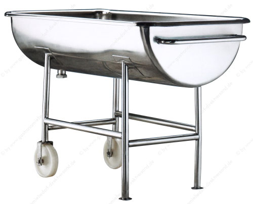 • aus Edelstahl 18/10, sandgestrahlt, Materialstärke 1,5 mm, Muldenkörper fugenlos, Untergestell aus Edelstahl 18/10, 1¼ Zoll-Ablauf mit Schraubverschluss, Muldentiefe des Beckens bei 150 l: 28 cm (und bei 250 l: 35 cm). Mit zwei ungelagerten Rädern Ø 160x40 mm aus hartem Nylon und in der Standardausführung 400 mit 2 Gleitfüßen (siehe Abb.) oder in Ausführung 401 mit 2 beweglichen Rädern ohne Feststeller. Ausführung 402 mit weichen Rollen Ø 160x40 mm