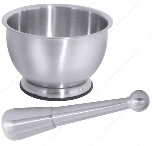 • aus Edelstahl 18/10, matt gebürstet, Fuß des Mörsers aus Kunststoff, Gewicht des Stößels: 0,25 kg, schwere Qualität