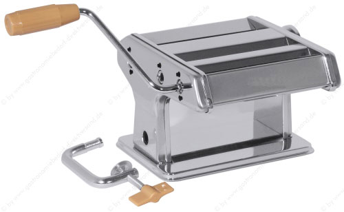• aus Edelstahl 18/0, zur eigenen Herstellung von Teigwaren, Walzenbreite 140 mm, 7 verschiedene Schnittbreiten einstellbar