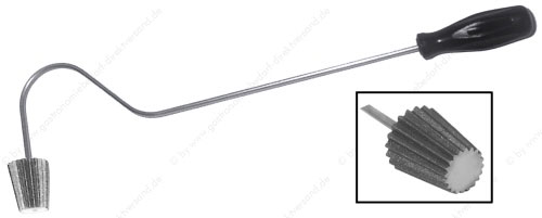 • aus rohem Eisenguss, Form rund gerippt, Kolben-Ø oben 5 cm, Kolben-Ø unten 3,5 cm, Kolbenhöhe 4 cm, Stiel aus Edelstahl 18/10 mit Kunststoff-Griff