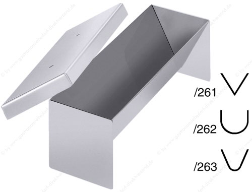 • aus Edelstahl, hochglänzend, gerade Kastenform, Materialstärke 0,9 mm, schwere Qualität
