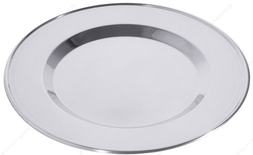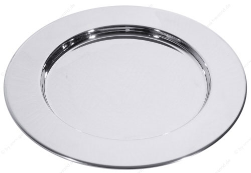 • mit Perlrand, aus versilbertem Stahl, Silberschicht 0,5 µ, anlaufgeschützt, nicht spülmaschinengeeignet, mit offen gebördeltem Rand