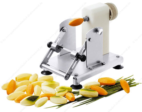 • aus Edelstahl 18/10, zum Zuschneiden von 4-8 cm langen Schloßkartoffeln, Pommes cocotte und Pommes fondantes, verschiedene Einstellungsmöglichkeiten