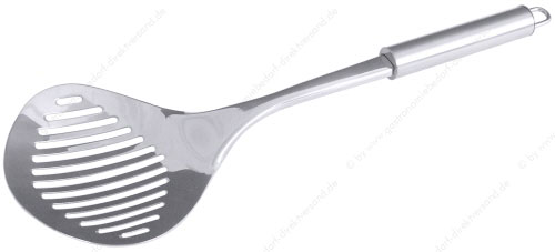 • aus Edelstahl 18/10, hochglänzend, flache Form, mit kurzem Stiel, mit 4 mm Lochung, extra schwere Qualität