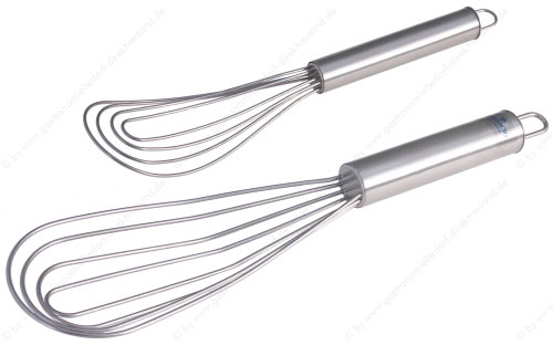 • 16 dicke Drähte, aus Edelstahl 18/10, ohne Aufhängeschlaufe, rutschhemmender, thermoplastischer, abrissfester Griff, die oktogonale Formgebung ermöglicht handliches, ermüdungsfreies Rühren, absolut spülmaschinenfest, schwere Spitzen-Qualität
