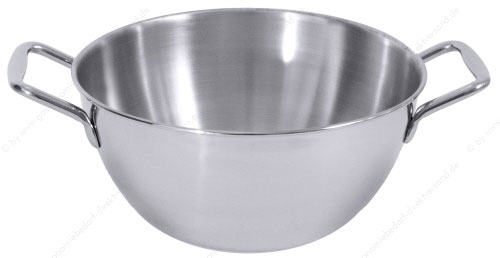 • aus Edelstahl 18/10, außen hochglänzend, innen seidenmatt poliert, mit gebördeltem Rand, schwere Qualität
