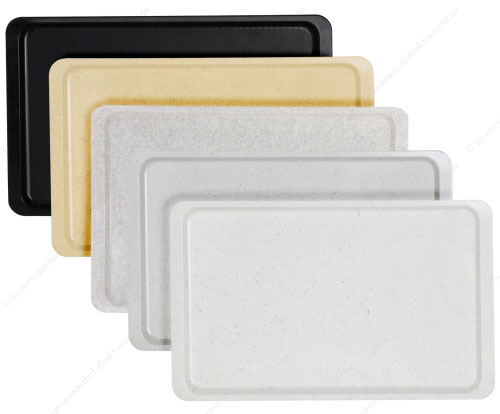 • aus glasfaserverstärktem Polyesterharz, spülmaschinenfest, robust, formbeständig, mit rutschfester Folie beschichtet