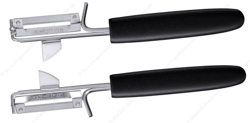 • aus Edelstahl 18/10, seidenmatt poliert, mit beweglicher Klinge aus geschärftem und gehärtetem Edelstahl 18/0, mit verschiebbarem Arretierring zur platzsparenden, sicheren Lagerung
