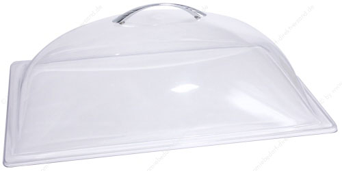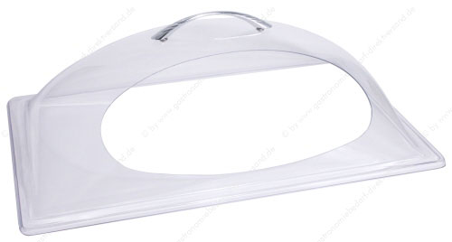 • aus glasklarem Polycarbonat mit verchromtem Griff, passt auf alle GN-Tabletts, wechselseitig eine Hälfte ganz aufklappbar, bis +65°C einsetzbar, sehr robuste Qualität, nahezu unzerbrechlich