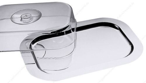 • aus Edelstahl 18/0, hochglänzend, Haube aus Luran, temperaturresistent zwischen -40°C und +95°C, Innenfläche 34 x 23 cm
