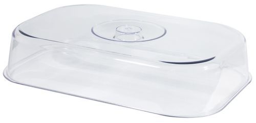 • Haube aus klarem SAN Kunststoff, flache Form mit Griffknopf, Tablett aus weißem SAN, temperaturbeständig von -40°C bis 90°C