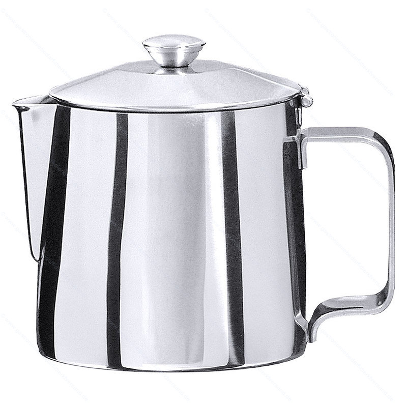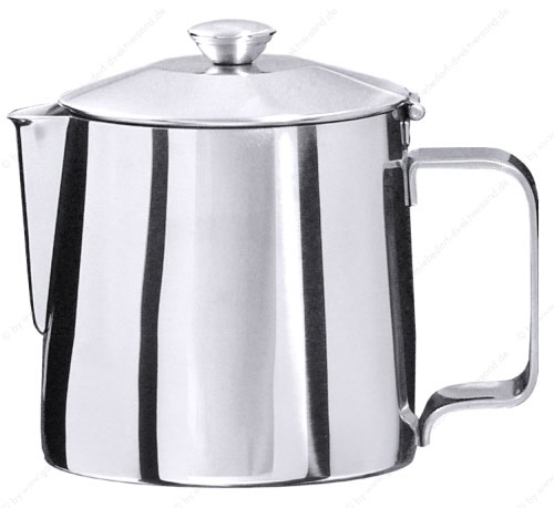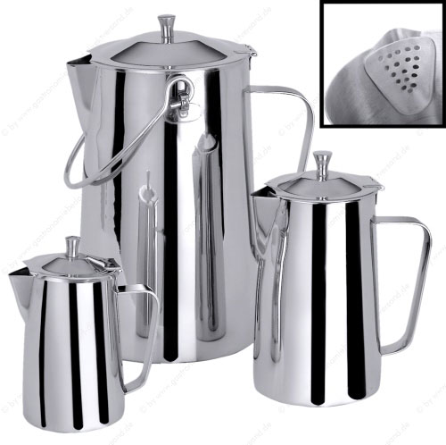 • aus Edelstahl 18/10, hochglänzend, mit Ausgusssieb, mit Scharnierdeckel