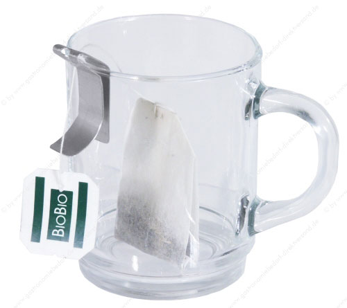 • aus Edelstahl 18/0, hochglänzend poliert, verhindert das Hineinrutschen des Beutelfadens, wertet Teegläser auf
