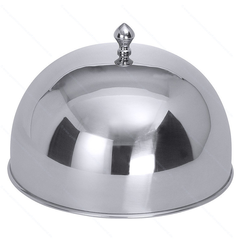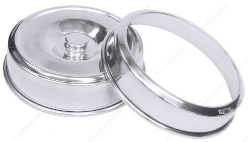 • aus Edelstahl 18/10, hochglänzend, konische Form, stapelbar (auch mit Teller), mit gebördeltem Griffloch und Rand, schwere Qualität. Wir fertigen alle Größen von Tellerglocken nach Vorlage Ihres Porzellantellers. Preis auf Anfrage. Das Griffloch kann auf Wunsch durch einen Griffsteg ersetzt werden.