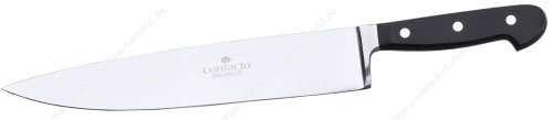 • geschmiedete Klinge und Zinken aus Chrom- Molybdän- Vanadium (DIN x50CrMoV15), vernieteter und verschweißter Griff aus POM-Kunst- stoff, Messerhärte 56 HRC, spülmaschinenfest, schwere Profiqualität