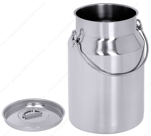 • aus Edelstahl 18/10, seidenmatt glänzend, mit Bodenring und Deckel, extra schwere Qualität, Deckel standardmäßig mit Kette ausgestattet