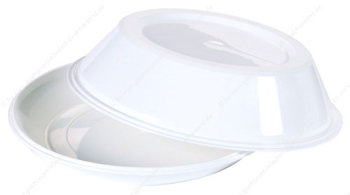 • aus weißem Polypropylen, für Teller bis max. Ø 26 cm, ohne Griffloch, stapelbar, temperaturresistent von -20°C bis +120°C, recyclebar, spülmaschinenfest, mikrowellengeeignet