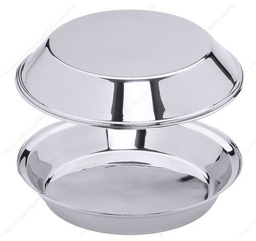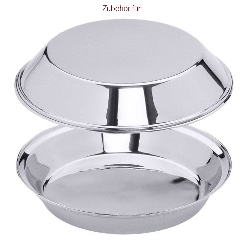 • aus Edelstahl 18/10, hochglänzend, mit Aluminium-Kern, passend für Teller bis 26 cm, Deckel doppelwandig, extra schwere Qualität