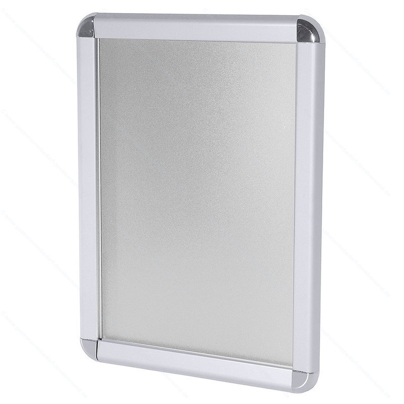 • in DIN-Plakatformaten, eloxiertes Aluminiumprofil, Ecken hochglänzend, mit Klapprahmen, Rückwand aus Polystyrol, verzinkter Stahlrückwand, Antireflex-Schutzscheibe, nur für Innenräume geeignet