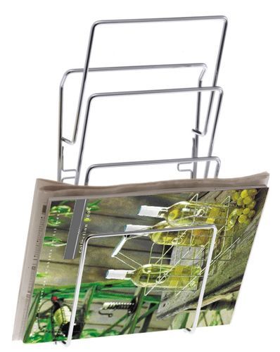 • zur Wandmontage, aus 6 mm starkem verchromtem Stahldraht, mit vier Ablagen für Illustrierten oder Zeitungen