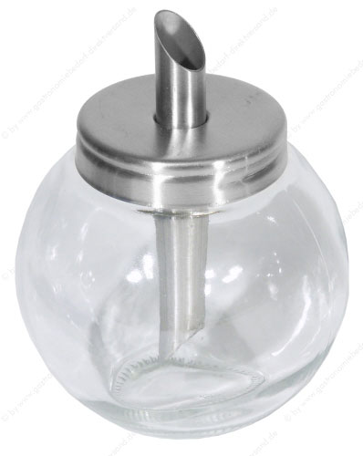 • aus schwerem Pressglas, mit langem Dosierrohr, mit Kappe aus Edelstahl 18/0